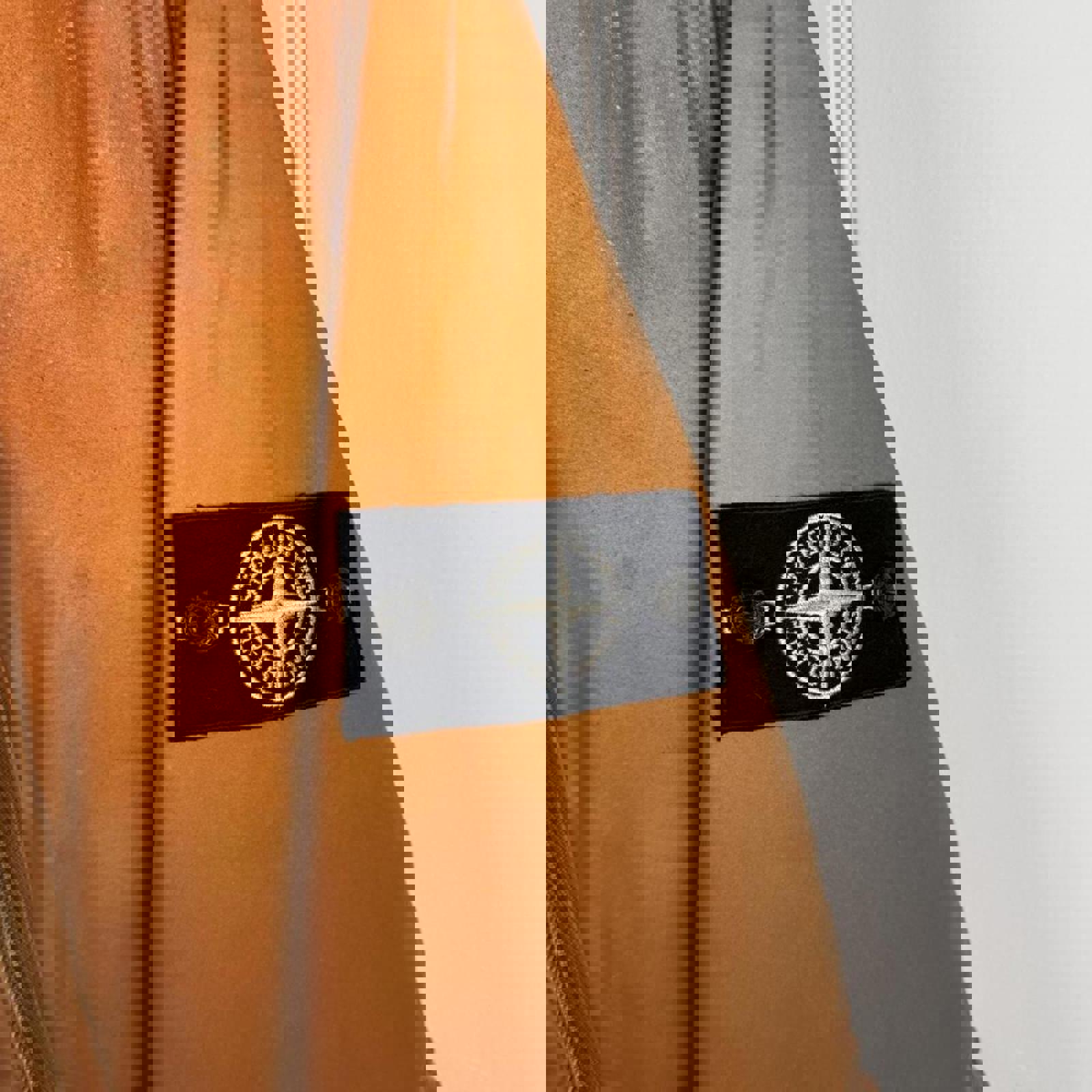 Stone Island Liquid Reflective jacket finished in a bronze/copper tone with full light-reactive coating that illuminates under flash or direct light. Features a soft fleece-lined interior for added warmth and comfort, full zip closure, zip hand pockets, and the signature Stone Island badge on the sleeve. A standout technical piece that shifts dramatically in different lighting.