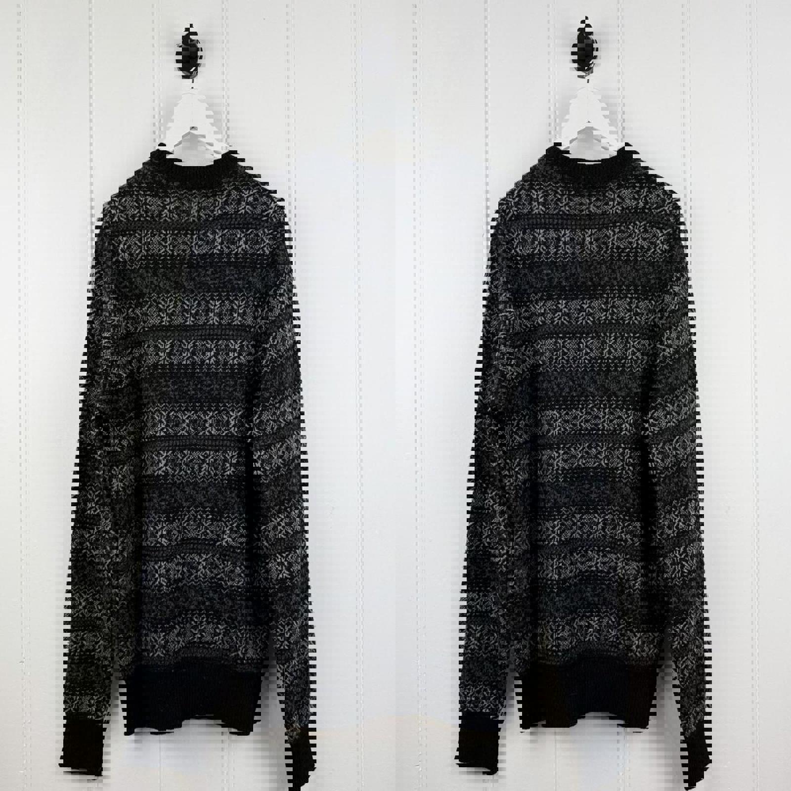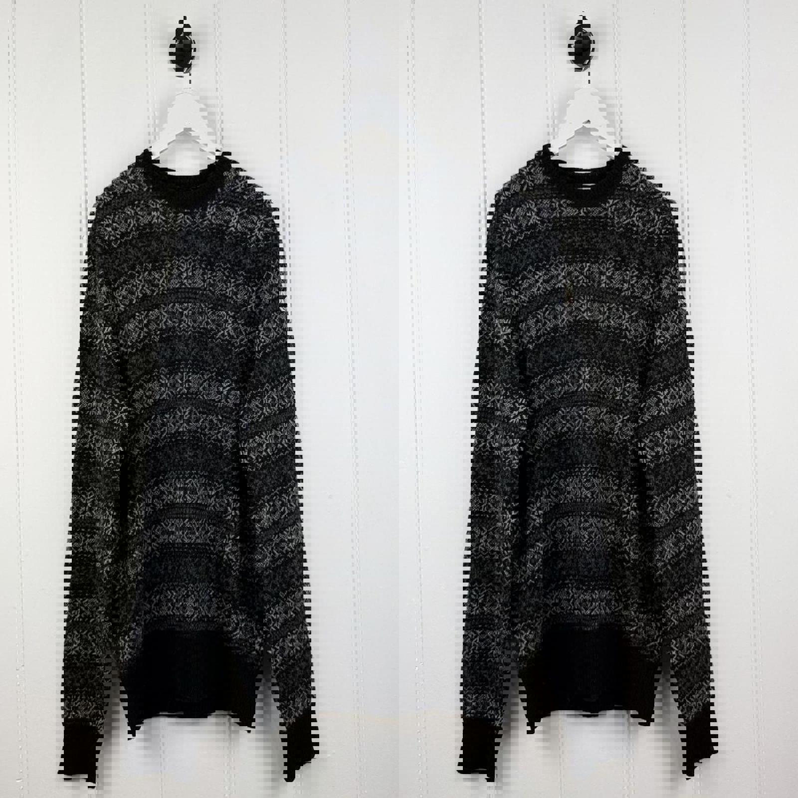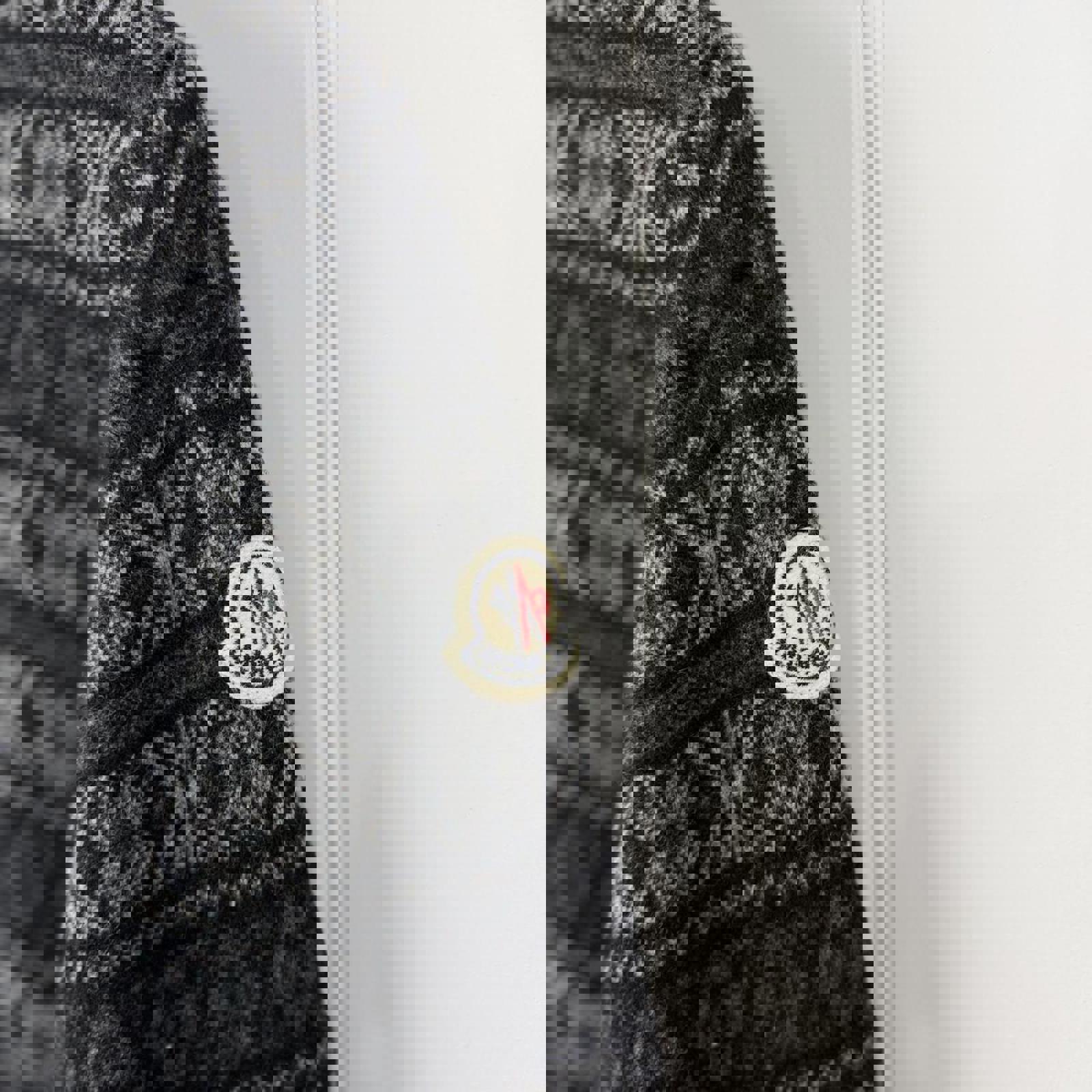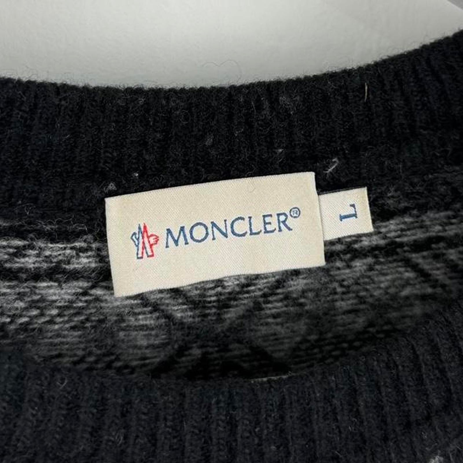 moncler, knit sweater, patterned jumper, black and grey, minimal bobbling, oversized fit, winter knit, cozy pullover, textured knit, casual warmth