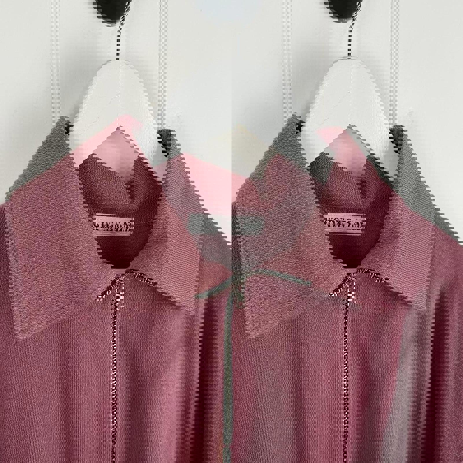 Stone Island 90s Garment-Dyed Wide Collar Half-Zip Sweat Burgundy (M)